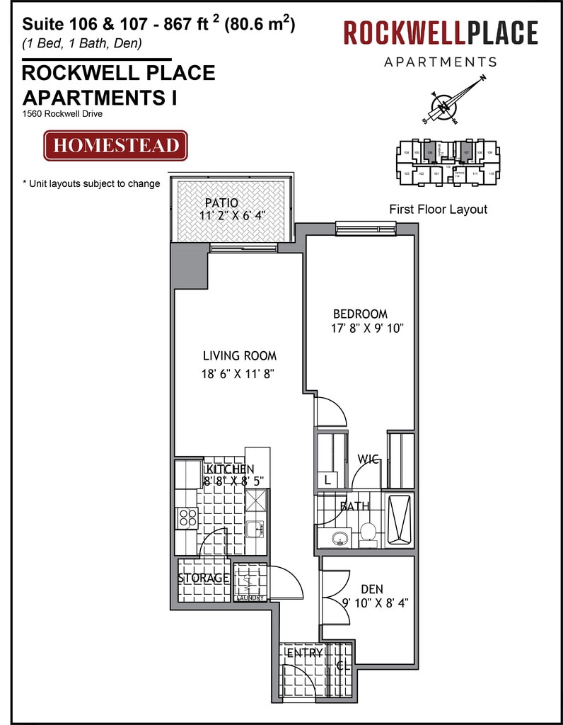 Apartment Model: 1 Bedroom + Den1 Bedroom, 1 Bath, 838-867 sq ftAvailable Now1 Bedroom + Den - Floorplan 1 2 Bedrooms