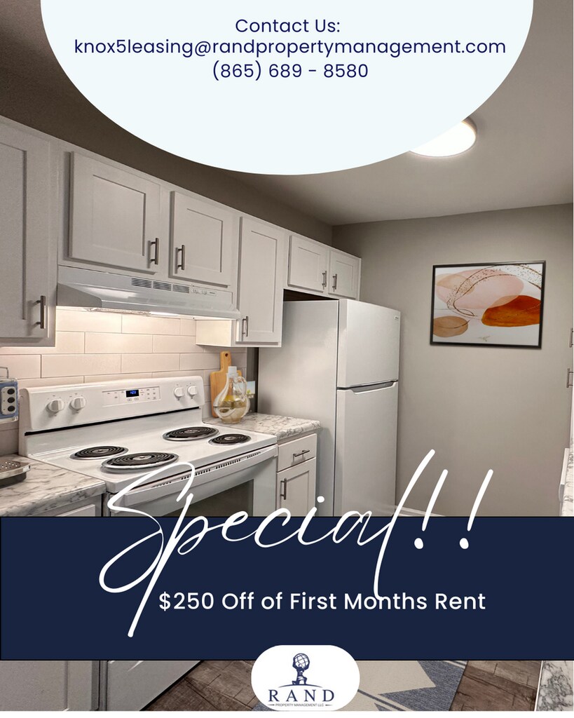 Experience comfort and convenience at Rocky View Apartments in North Knoxville. Take advantage of our limited-time move-in special: save $750 on your first month’s rent! Apartment Features: Spacious 1-bedroom, 1-bathroom layout Modern finishes and abundant natural light Large bedroom with private bath – perfect for relaxation Rare in-unit washer and dryer connections for added convenience Stylish kitchen with sleek countertops, ample cabinetry, and contemporary appliances Open-concept living and dining areas, ideal for entertaining or cozy nights in Community & Location: Enjoy a peaceful setting with easy access to local parks, restaurants, and shopping Quick commutes to Happy Hollow, Old City, Downtown, and UTK Details: Move-in special: $750 off first month’s rent! Professionally managed for your peace of mind Pet policy and utility details available upon request Ready to make Rocky View Apartments your new home? Contact us today to schedule a tour or apply online. Don’t miss out on this special offer—homes are leasing fast!