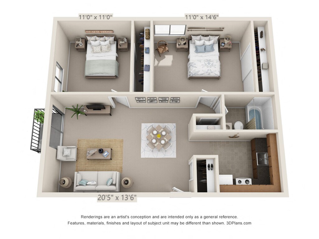 2 Beds, 1 Bath, 755 sq ftAvailable Dec 15Model Gallery