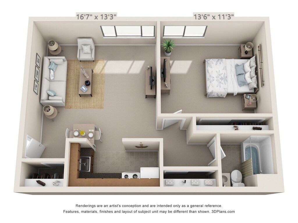 1 Bed, 1 Bath, 549 sq ftModel Gallery