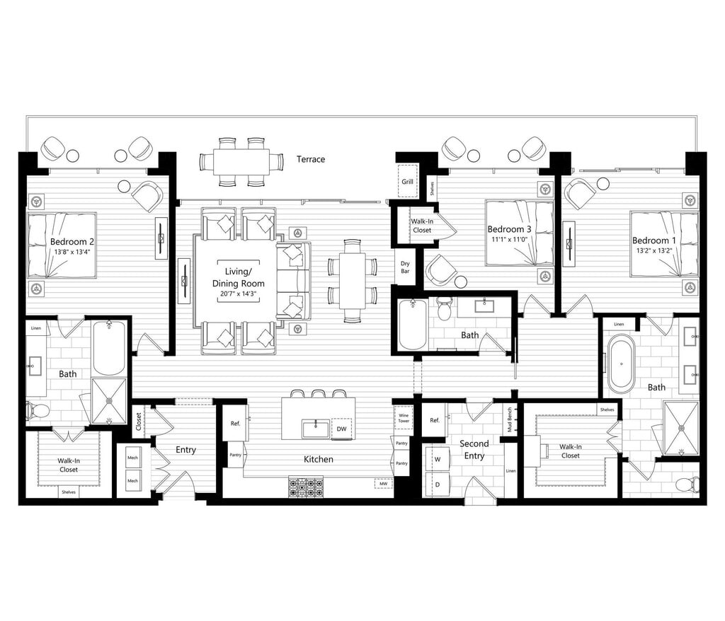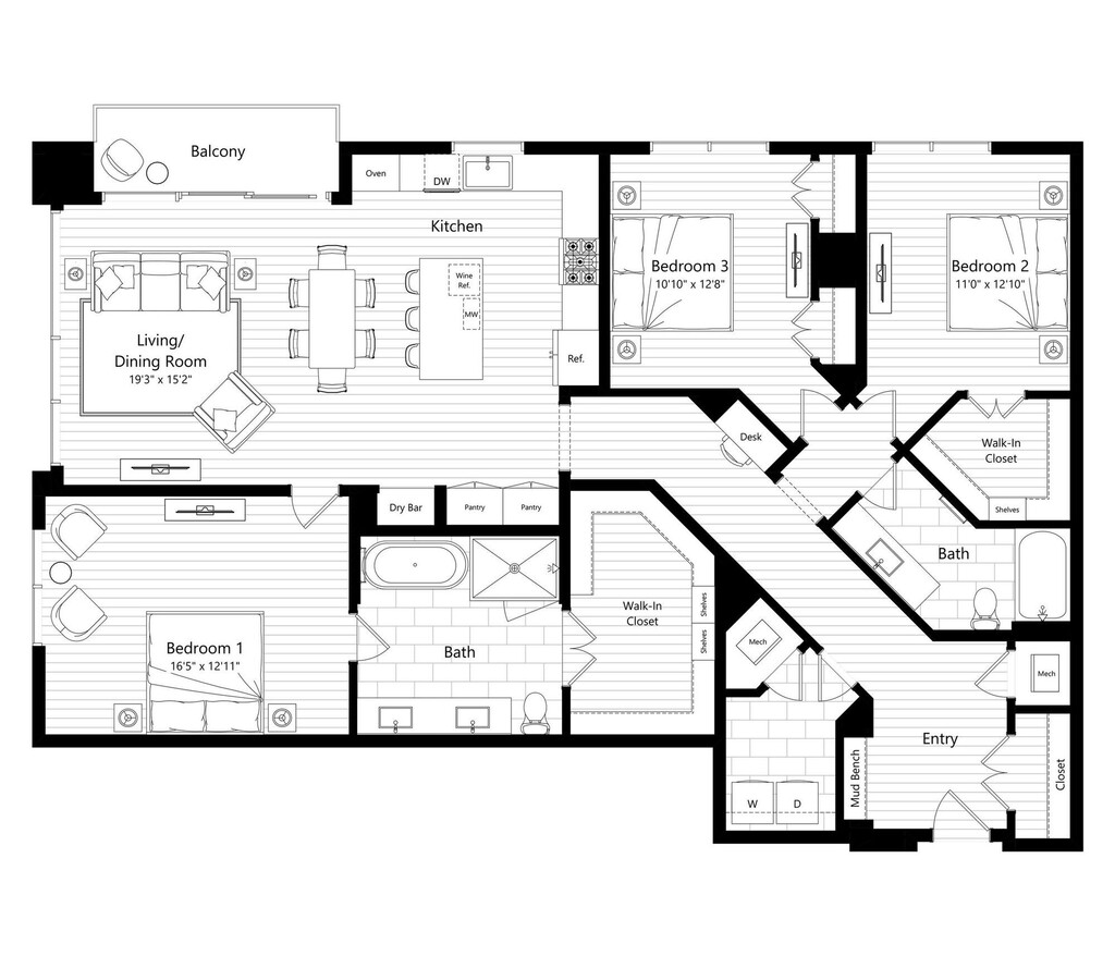 Apartment Model: A1From $2,9551 Bedroom, 1 Bath, 888 sq ftAvailable Now![]()