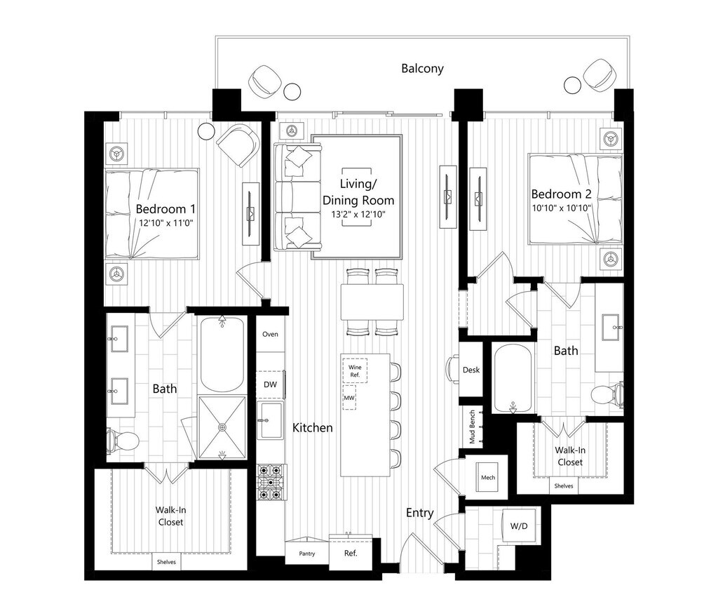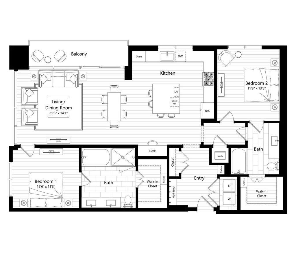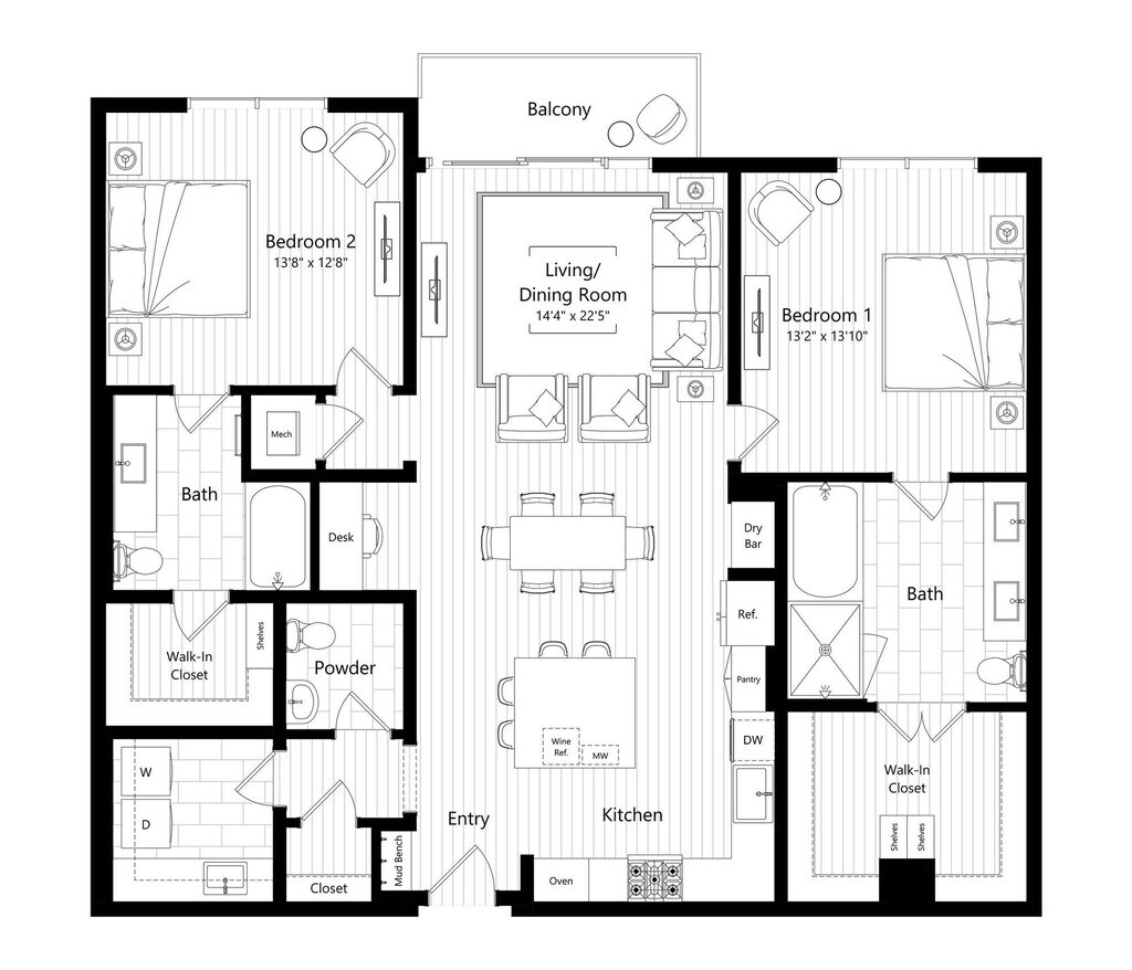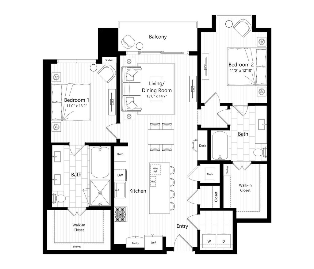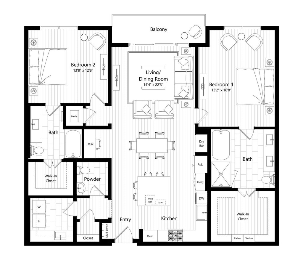 1 Bed, 1 Bath, 888 sq ftAvailable NowModel Gallery