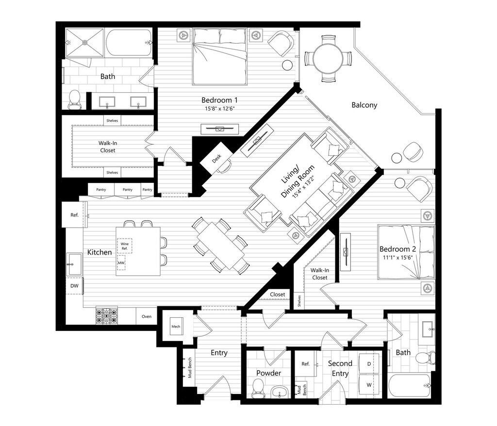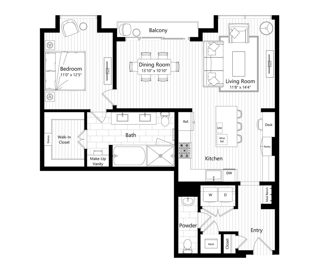 1 Bed, 1.5 Baths, 1123 sq ftModel Gallery