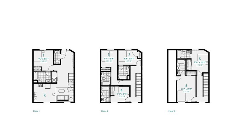 Apartment Model: Coliving Suite 11 Bedroom, 1 Bath, 152-226 sq ftUnavailable![]()