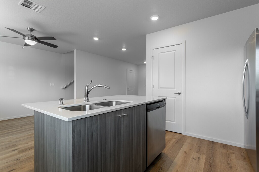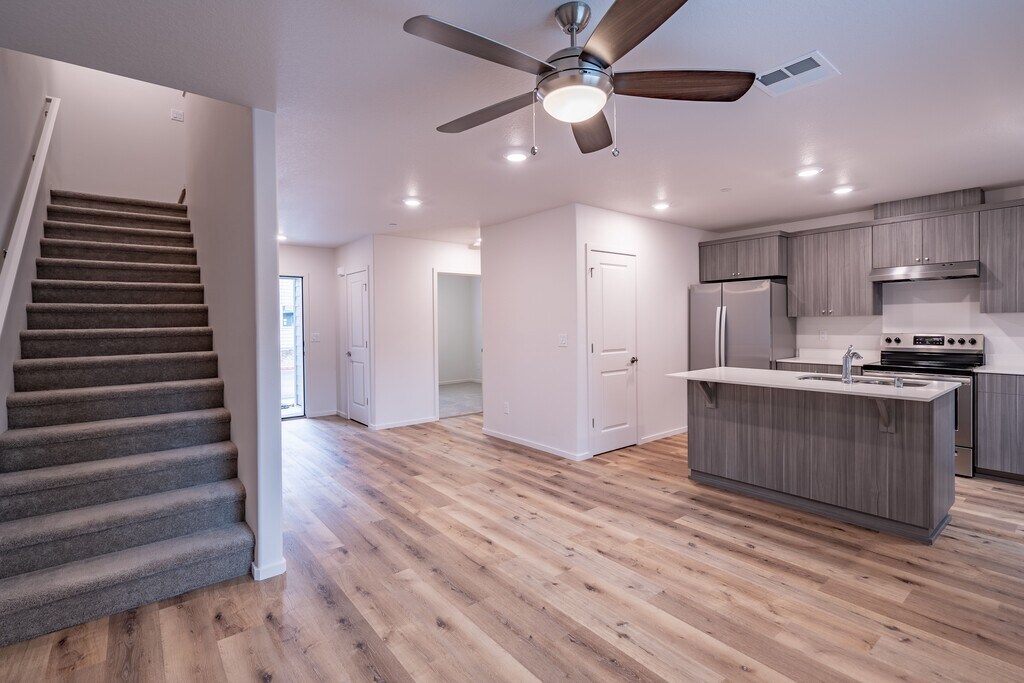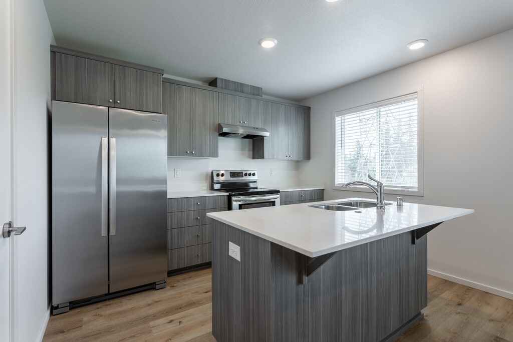 Our townhomes at Roosevelt Commons are built with quality and comfort in mind. The front entrance sets the tone for spacious open-floor living and leads you into the great room with an attached kitchen featuring slab counters, top-of-the-line cabinetry, and high-end stainless steel appliances. Spacious four bedrooms including an on-suite bath, a laundry room, and 3 full bathrooms are tucked away upstairs. These homes border the lush Burnt Bridge Creek Trail, a stunning 8-mile nature trail as well as several local parks within close proximity. Nearby highway access makes commuting a breeze, and there is a variety of shopping and restaurants in the area.