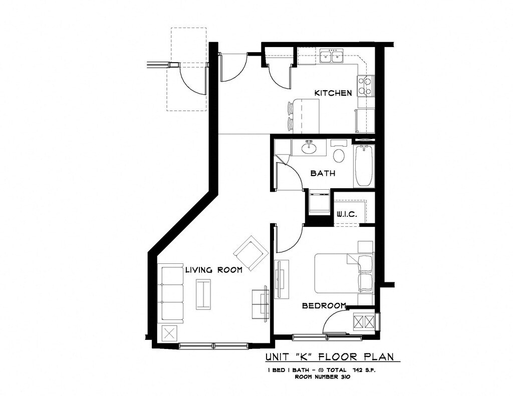 1 Bedroom 1 Bathroom - Floorplan 3 ![]()