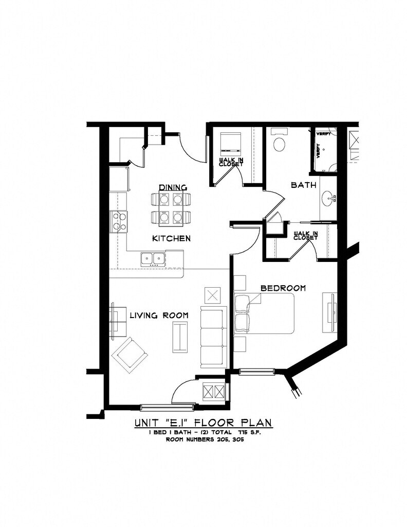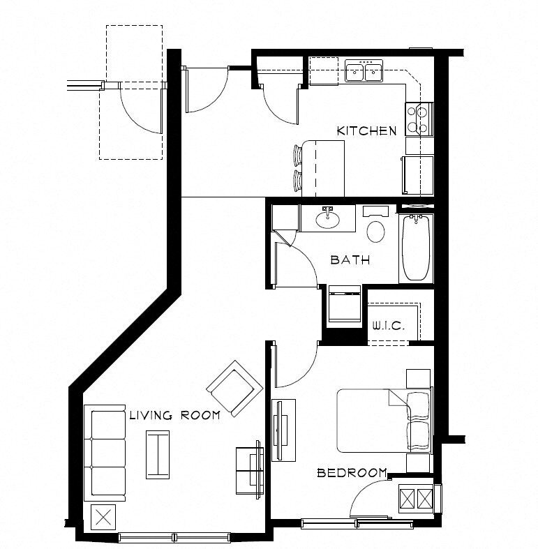 1 Bedroom 1 Bathroom - Floorplan 9 1 Bedroom 1 Bathroom + Den