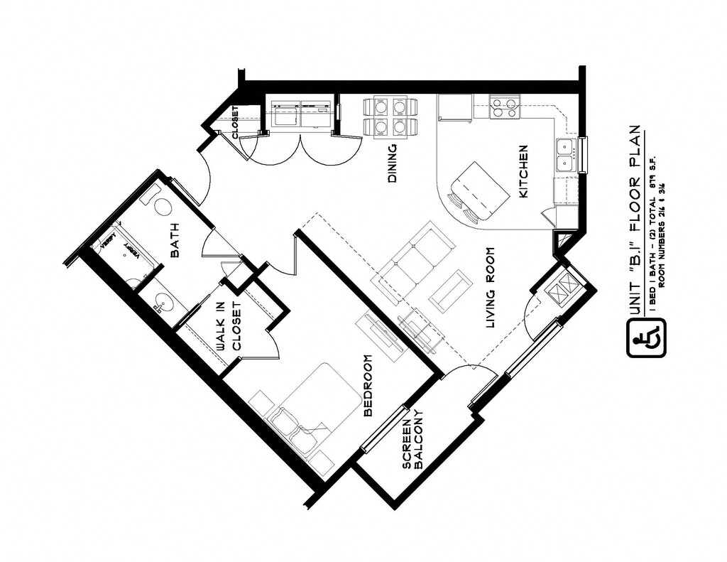 1 Bed, 1 Bath, 952 sq ftModel Gallery
