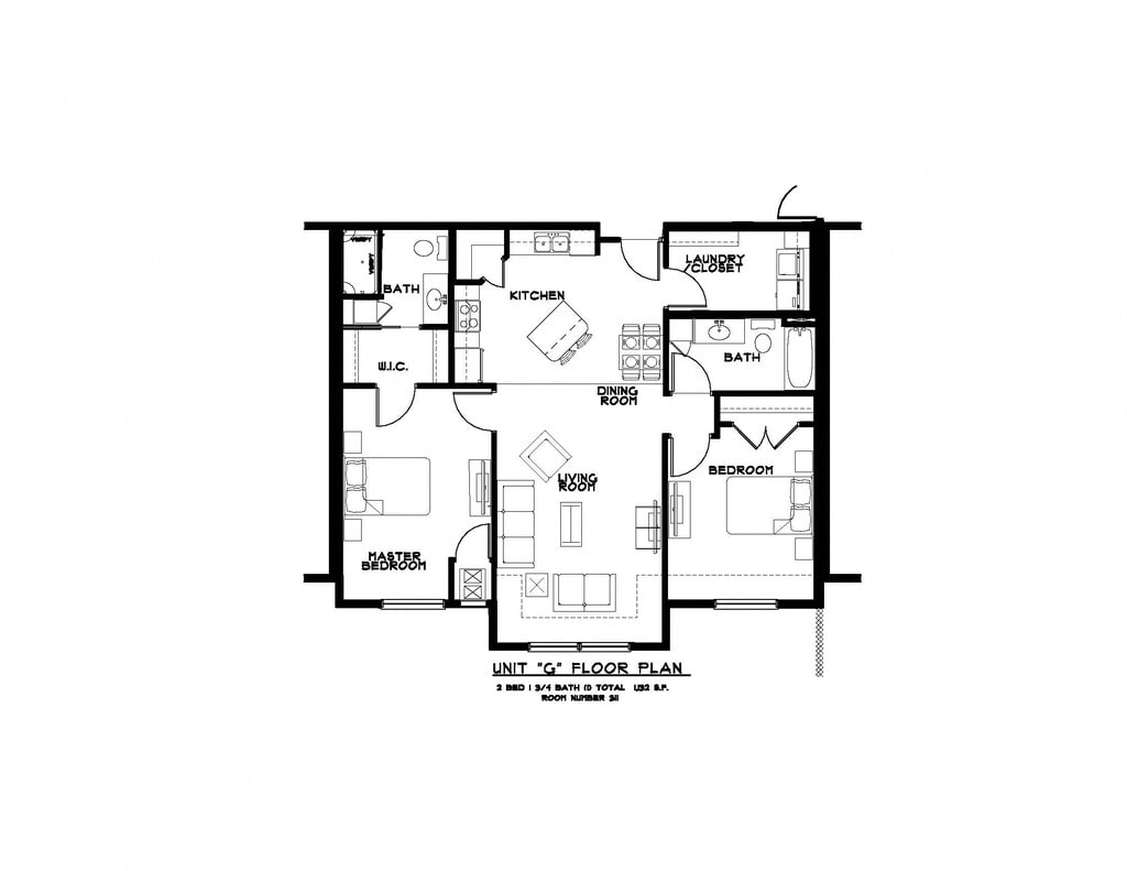 2 Bedroom 2 Bathroom - Floorplan 5 2 Bedroom 2 Bathroom + Den