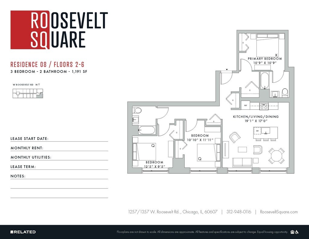 2 Bedroom to 3 Bedroom Apartments at Roosevelt Square currently range from $2,795 to $3,500