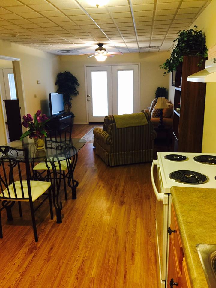 At Rose Ella Apartments we provide all-inclusive living, which means you pay one bill for all of your living expenses. No more worrying about multiple bills to pay. The electricity, water/sewer, Internet, cable TV, home security system monitoring, and trash service are all included with your monthly rent. Our entire facility is on one level, so there are no bothersome stairs to climb! Each two bedroom apartment is a spacious 900 sq ft. with a kitchen and handicap accessible bathroom. All apartments have interior and exterior entrances, burglar and health alarm systems, private patios, and personal thermostat. Want more? We offer housekeeping options, on site restaurant, and pets are welcome too!