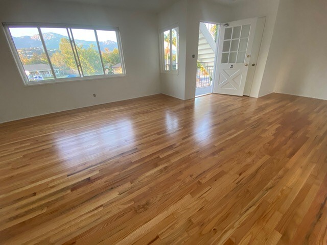 Beautiful bright second floor 1 bedroom apartment located in the heart of upper State Street. Walking distance to Handlebar Coffee, Starbucks, Los Agaves, Shintori Sushi, CVS, and much more. Newly refinished original hardwood floors, lots of storage/closets, including a big walk in closet in the bedroom and sweeping views of the Santa Ynez mountains. The sunsets are amazing in this unit and fill the entire space with loads of golden light. Minutes from Hendry's beach, Trader Joes, Whole Foods and Cottage Hospital. Onsite covered parking and room for a bike or two. A quick ride to downtown and the waterfront.