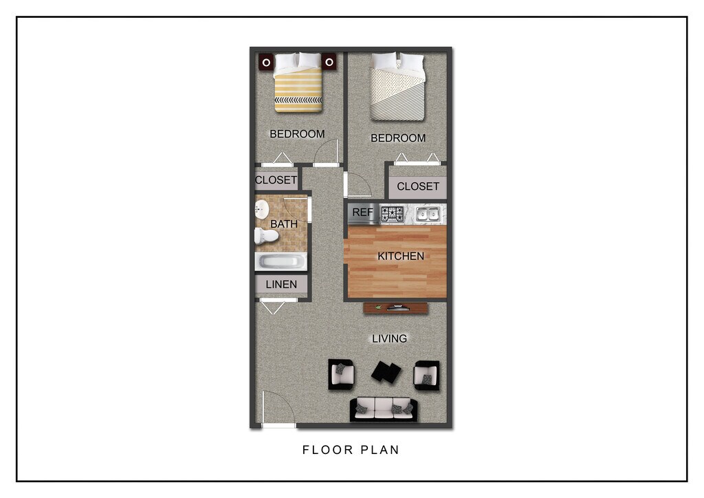 2 Beds, 1 Bath, 640 sq ftTotal Monthly PriceAvailable February 1, 2026Model Gallery