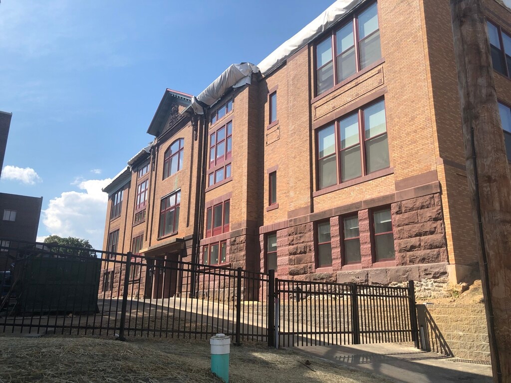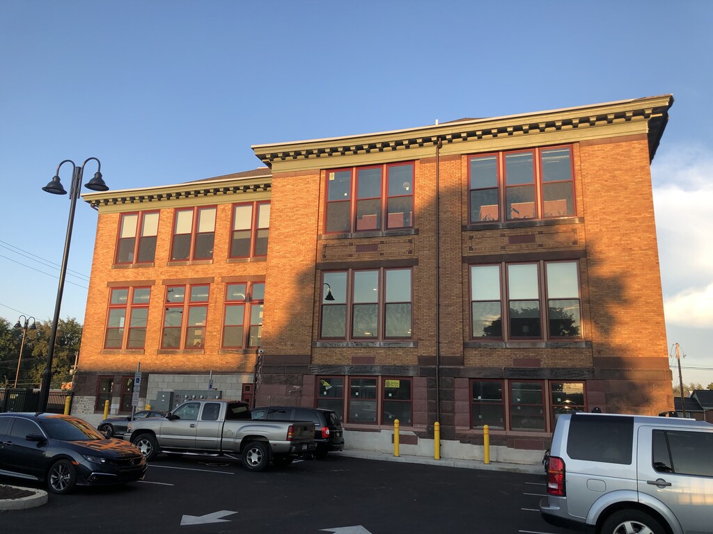 Rose Rent Lofts is a residential apartment community in downtown Chambersburg, PA. The building is a former High School with original portions as old as 1826. Converted to 28 loft apartments in 2020, one unit is reserved for guests of residents on a priority basis, then available to other Chambersburg via AirB&B. Other property amenities include a piano parlor with comfortable lounge seating to relax, work, or play our 1870 grand piano. Residents can also enjoy our 85" large screen TV with streaming and cable services from the comfort of our deep, leather chesterfield sofa in the community rec room. A Bluetooth sound system can play residents' tunes while they enjoy a game of pool on our 8' Connelly table. Residents are welcome to entertain their own guests here at any time and these spaces can be exclusively booked for special events. Internet access via WiFi is available free to our residents, but a counter in our common area has wired high-speed internet available for working or gaming. Our apartments are pet-friendly and our dog wash has a hydraulic lift professional tub for pets both large and small. [NOTE: Waiting Lists are being compiled now for units coming in Phase 3, and for Phase 2 apartments that become available in 2021.]