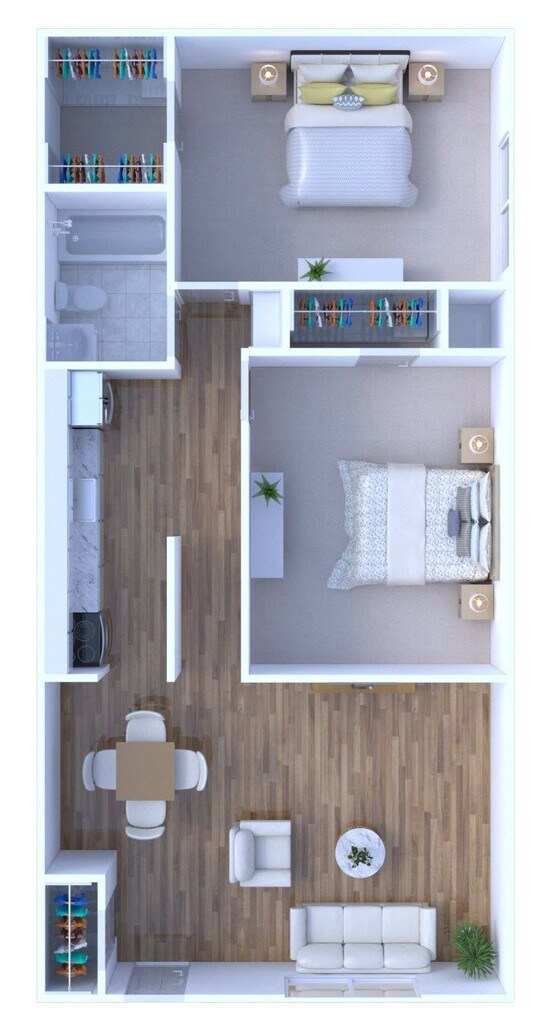 1 Bed 1 Bath | Renovated (RG) - Floorplan 1 1 Bed 1 Bath Townhome | Classic (FS)