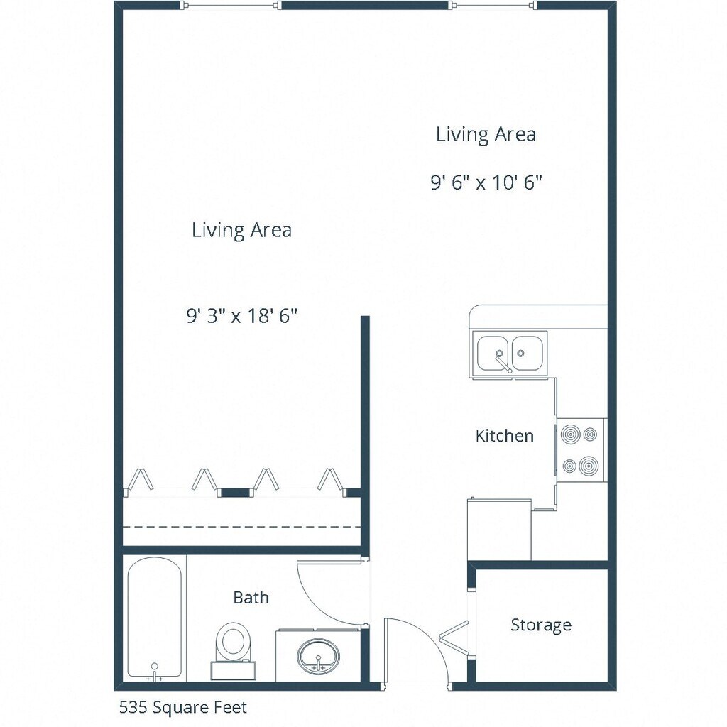 Studio, 1 Bath, 535 sq ftLargest StudioThis is the largest Studio at this PropertyModel Gallery