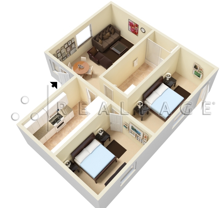 Apartment Model: The Baroness$8952 Bedroom, 1 Bath, 806 sq ftAvailable Now![]()