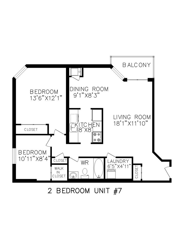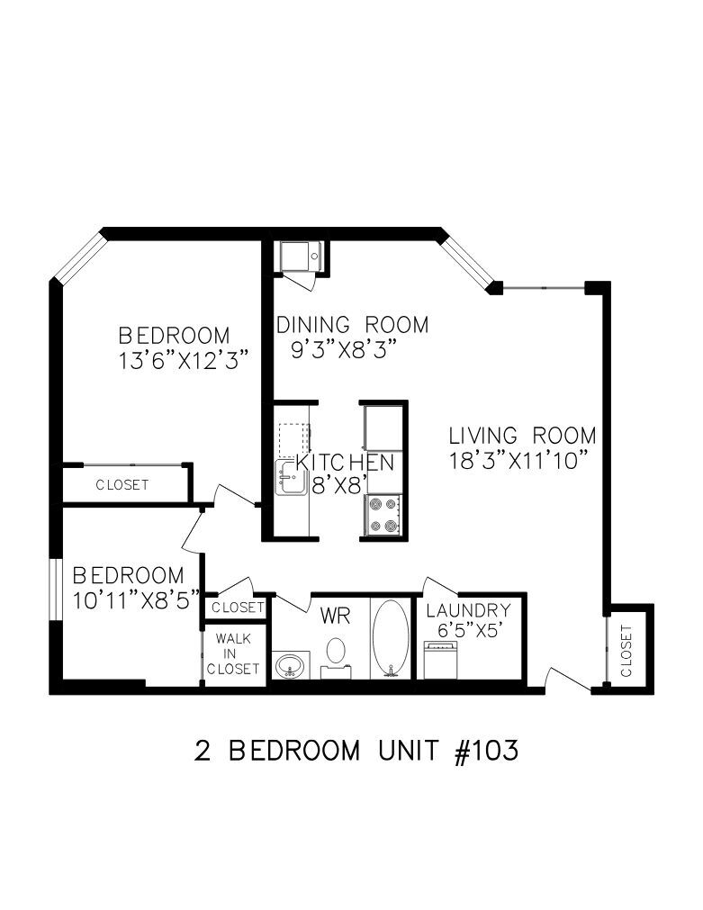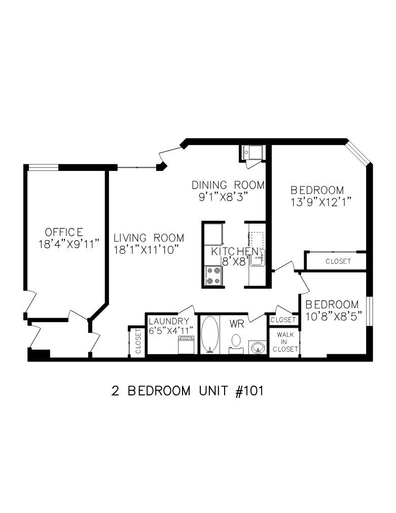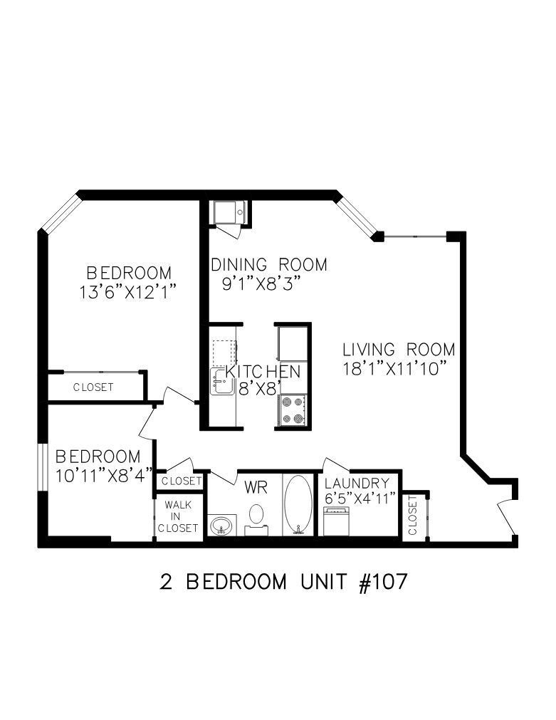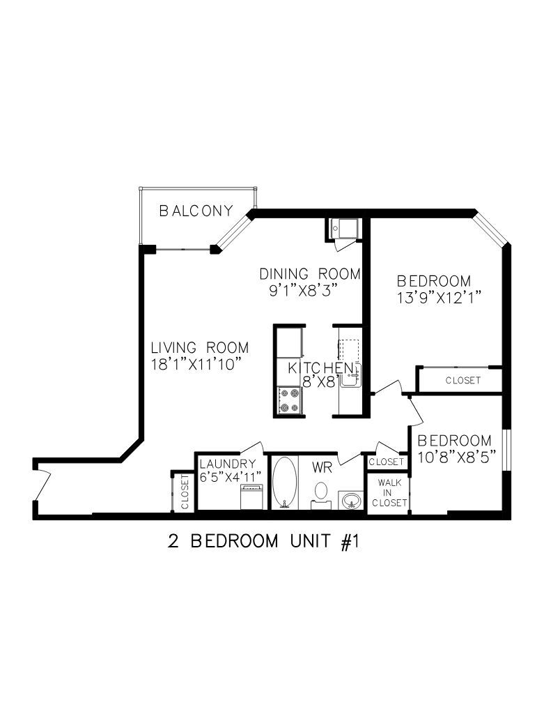 1 Bedroom - Floorplan 4 2 Bedrooms