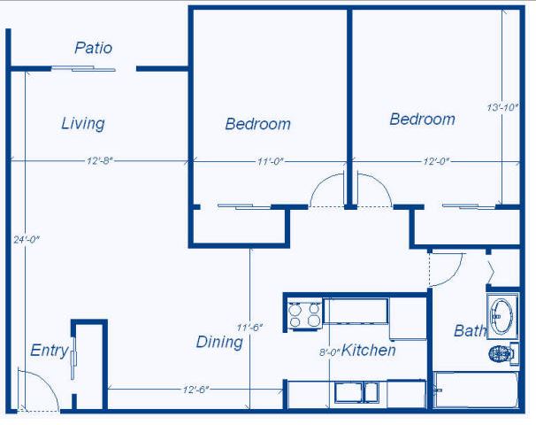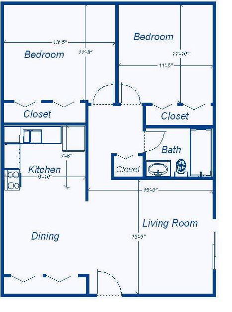 Apartment Model: 2 Bed/1 Bath$1,1002 Bedroom, 1 Bath, 1100 sq ftAvailable Now![]()