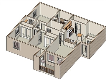 Apartment Model: 2x2$1,0542 Bedroom, 2 Bath, 950-960 sq ftAvailable Now2x2 - Floorplan 1 3 Bedrooms