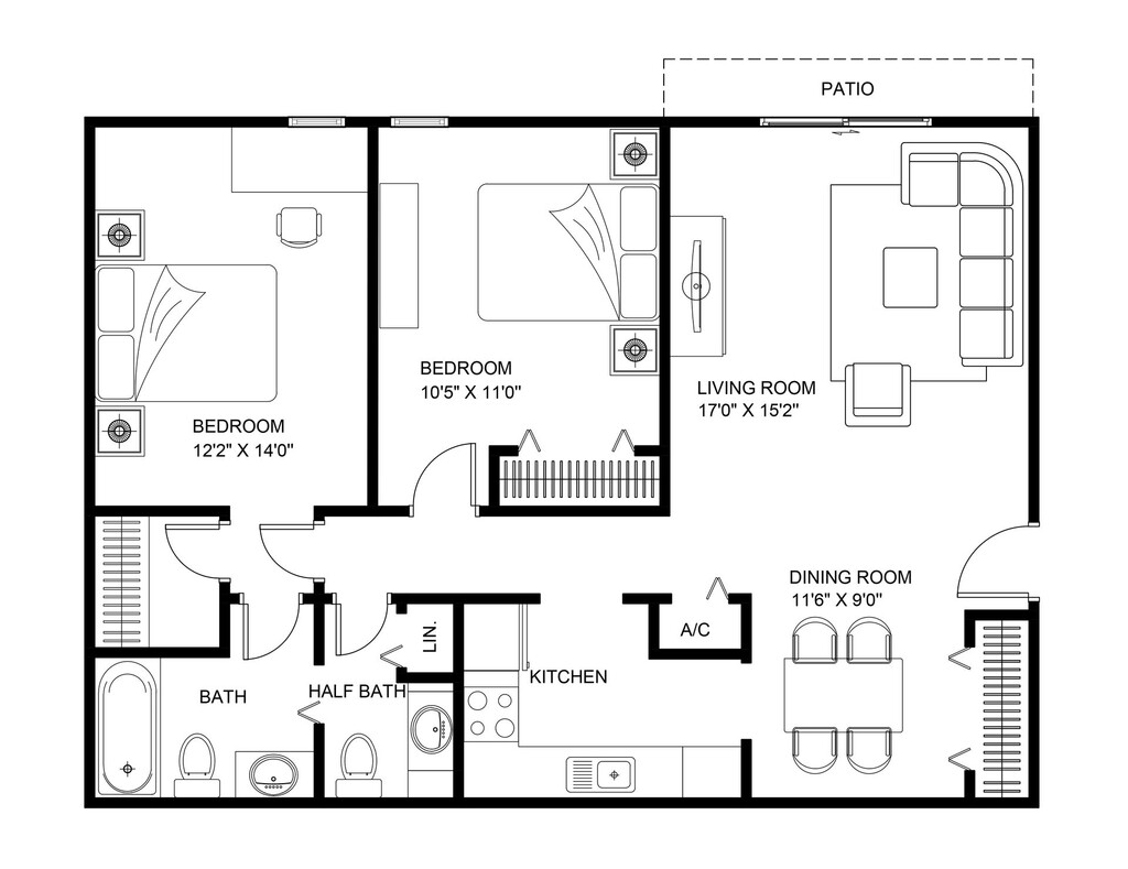 The All New Rosewood Gardens Apartments - Floorplan 12 2 Bed 1.5 Bath Classic