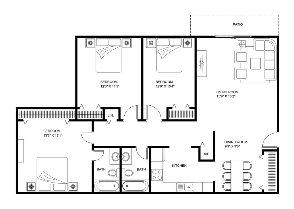 Apartment Unit: F07Apartment Model: 2 Bed 1.5 Bath Classic$1,0002 Bedroom, 1.5 Bath, 934 sq ftAvailable November 12, 20253 Bedrooms