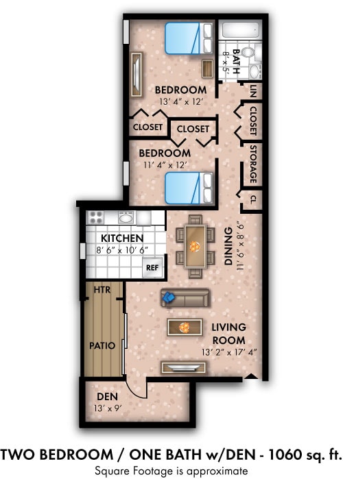 2 Beds, 1 Bath, 1060 sq ftAvailable Dec 8Model Gallery