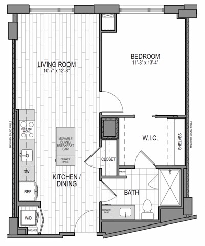 STUDIO FURNISHED (30-DAY STAY AVAILABLE) - Floorplan 1 STUDIO HANDICAP ACCESSIBLE