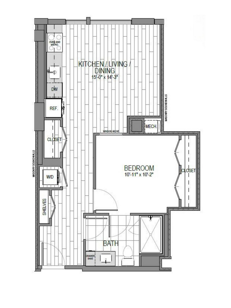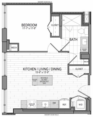 STUDIO - Floorplan 1 Apartment Unit: Residential-1548Apartment Model: STUDIO$2,395Studio, 1 Bath, 365 sq ftAvailable November 25, 2025![]()