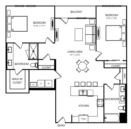 Apartment Model: Model F$2,3002 Bedroom, 2 Bath, 1300 sq ftAvailable Now![]()