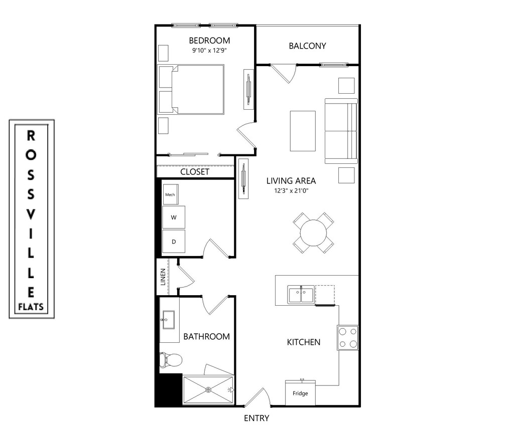 Rossville Flats offers 1 to 2 Bedroom apartments starting from $1,255 and having 593–1,300 sq ft. Here is the current pricing and availability: