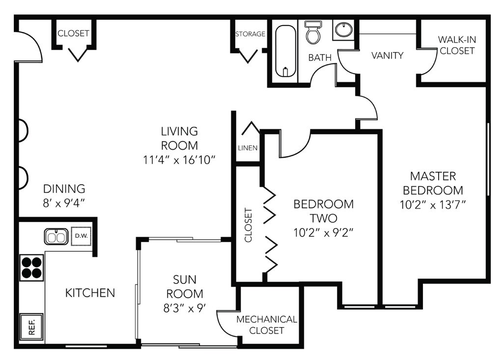 Apartment Model: The Willow2 Bedroom, 1 Bath, 950 sq ftUnavailableFloorplansPhotos![]()