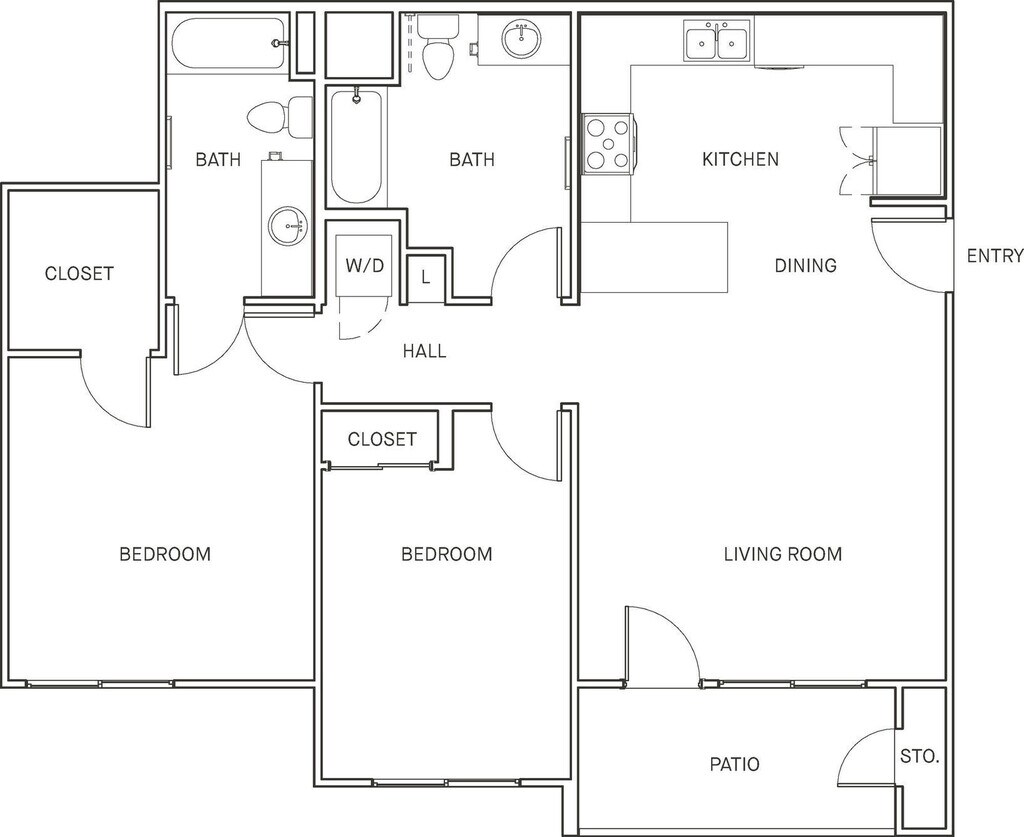 2 Beds, 2 Baths, 1075 sq ftPlus FeesAvailable NowLargest 2 BedroomThis is the largest 2 Bedroom at this PropertyModel Gallery