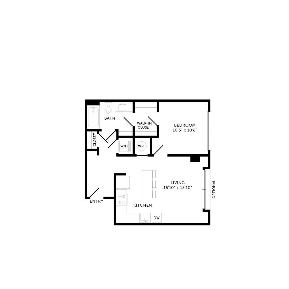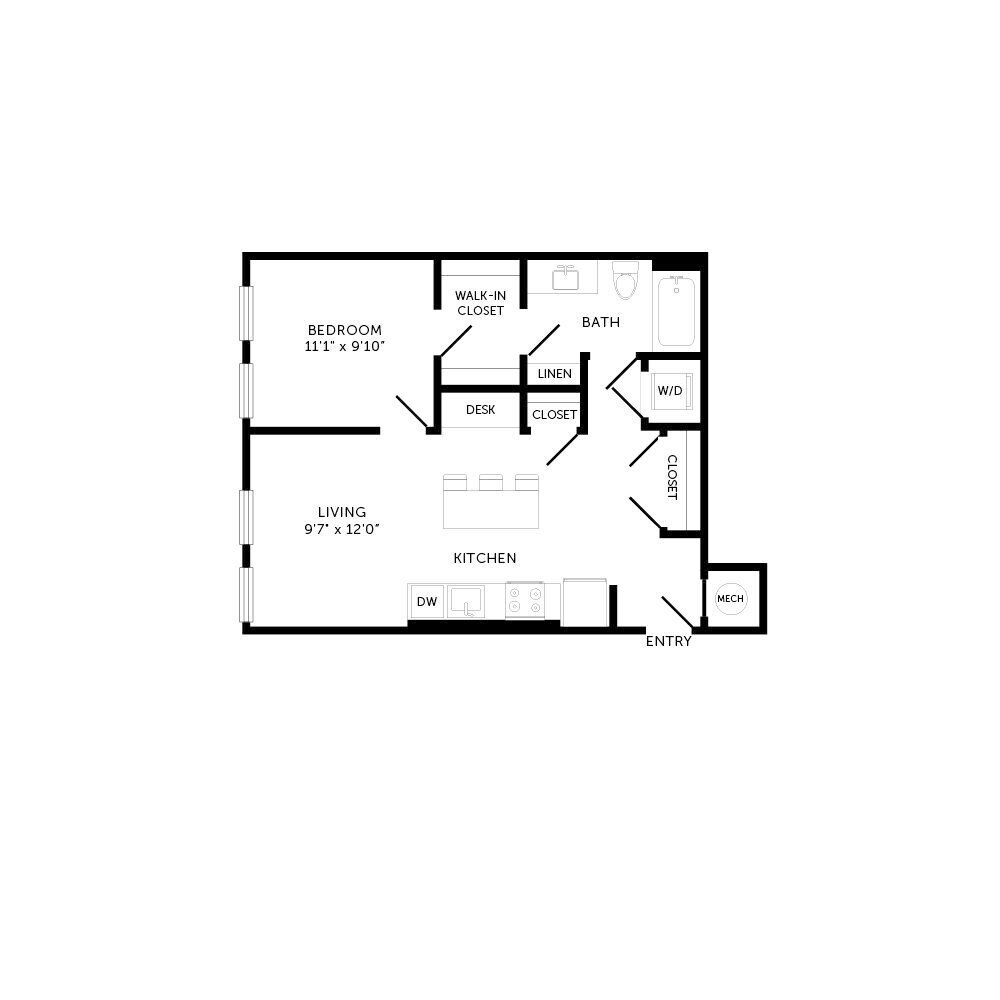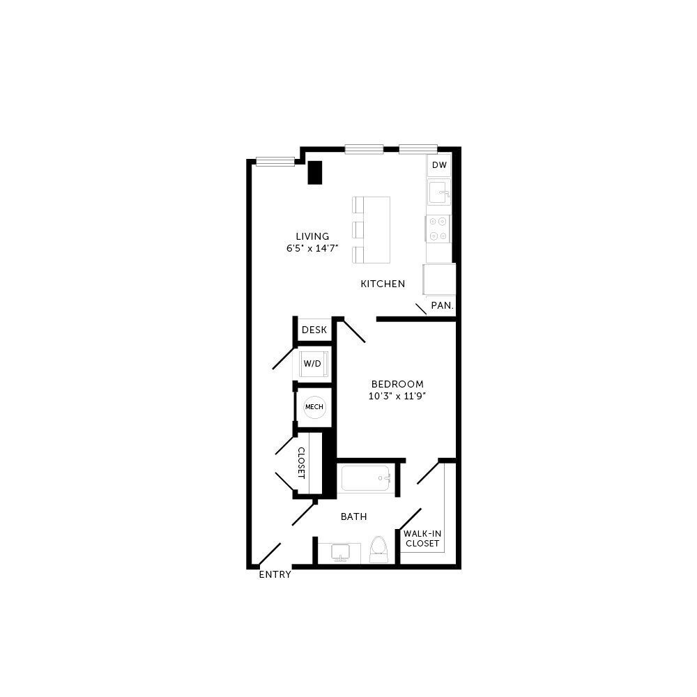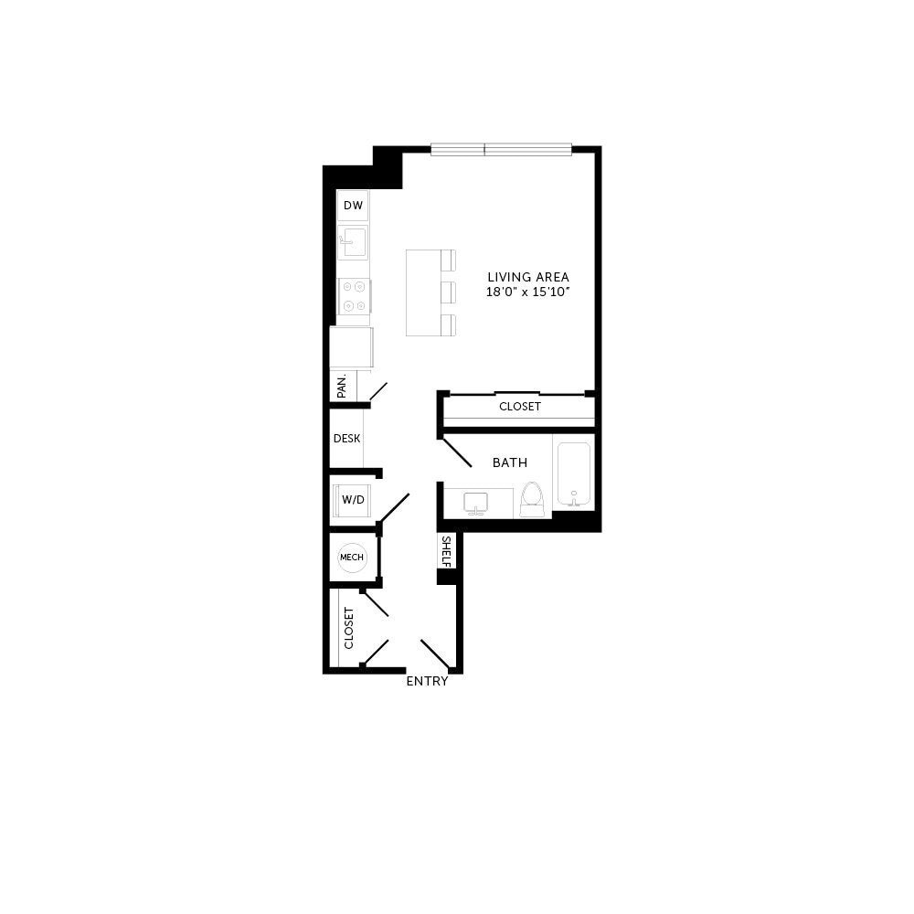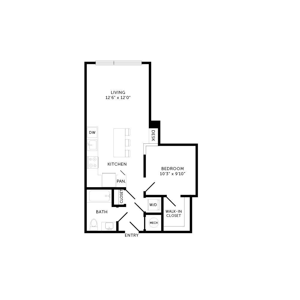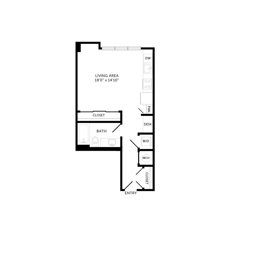 Studio, 1 Bath, 522 sq ftAvailable Dec 29Model Gallery