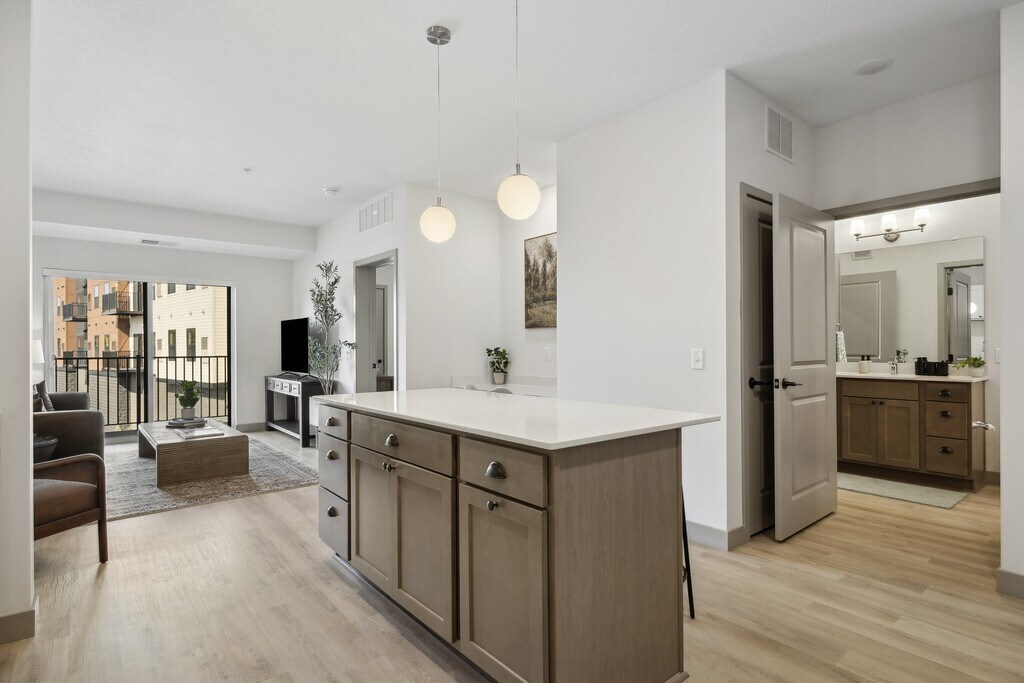 NOW OPEN! | Poised on the outskirts of the Twin Cities metro area, Rowe is the epitome of high-end living- fusing modern features and timeless aesthetics to set a new standard for luxury within the embrace of a cherished small-town community. Immerse yourself in a home where attention to detail is paramount. Gold accent lighting fixtures cast a warm and inviting glow throughout the living spaces. Apartments are adorned with a tasteful mix of metals, that further intertwine a modern design with a touch of classic charm.