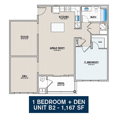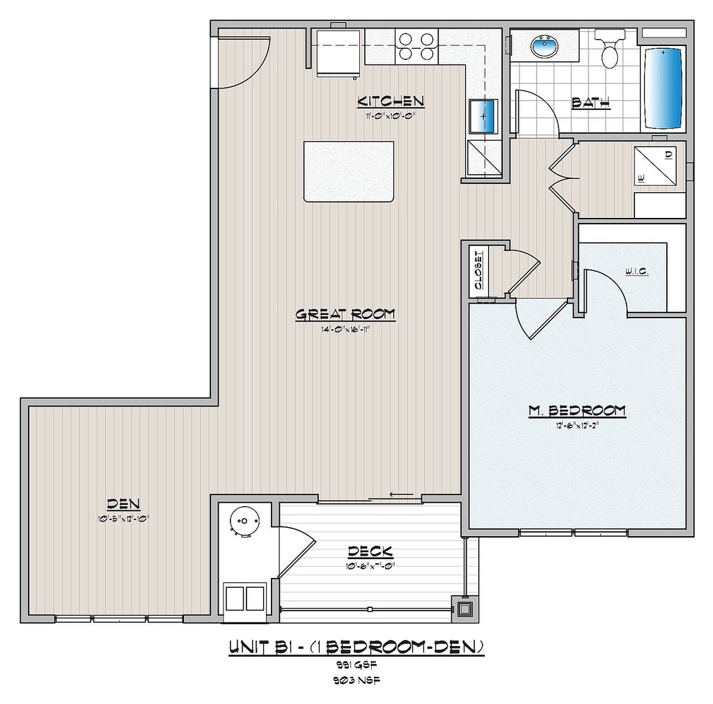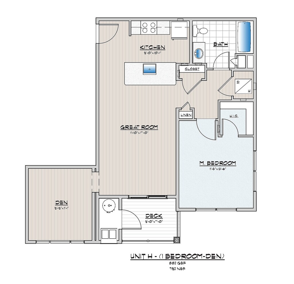 1 Bedroom 1 Bathroom with Den - Floorplan 1 Apartment Unit: 1005-304Apartment Model: 1 Bedroom 1 Bathroom with DenFrom $1,6091 Bedroom, 1 Bath, 991 sq ftAvailable Now1 Bedroom 1 Bathroom A