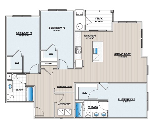 3 Bedroom 2 Bathroom L - Floorplan 1 Apartment Unit: 1014-301Apartment Model: 3 Bedroom 2 Bathroom LFrom $1,8993 Bedroom, 3 Bath, 1533 sq ftAvailable December 7, 2025