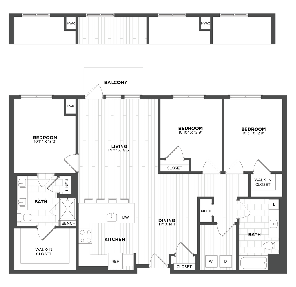 3 Bed/2 Bath-C1 - Floorplan Apartment Unit: 324Apartment Model: 3 Bed/2 Bath-C1$4,8503 Bedroom, 2 Bath, 1428 sq ftAvailable May 19, 2026![]()