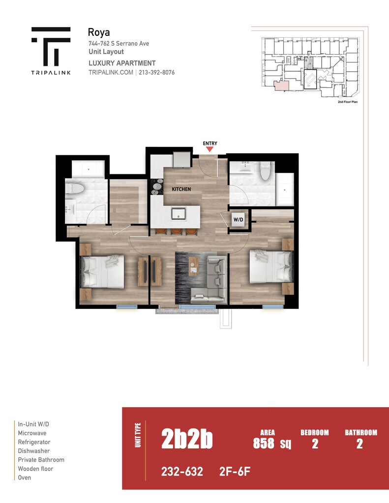 Apartment Model: 2 Bed 2 Bath - 858 sqft$3,3052 Bedroom, 2 Bath, 858 sq ftAvailable Now![]()