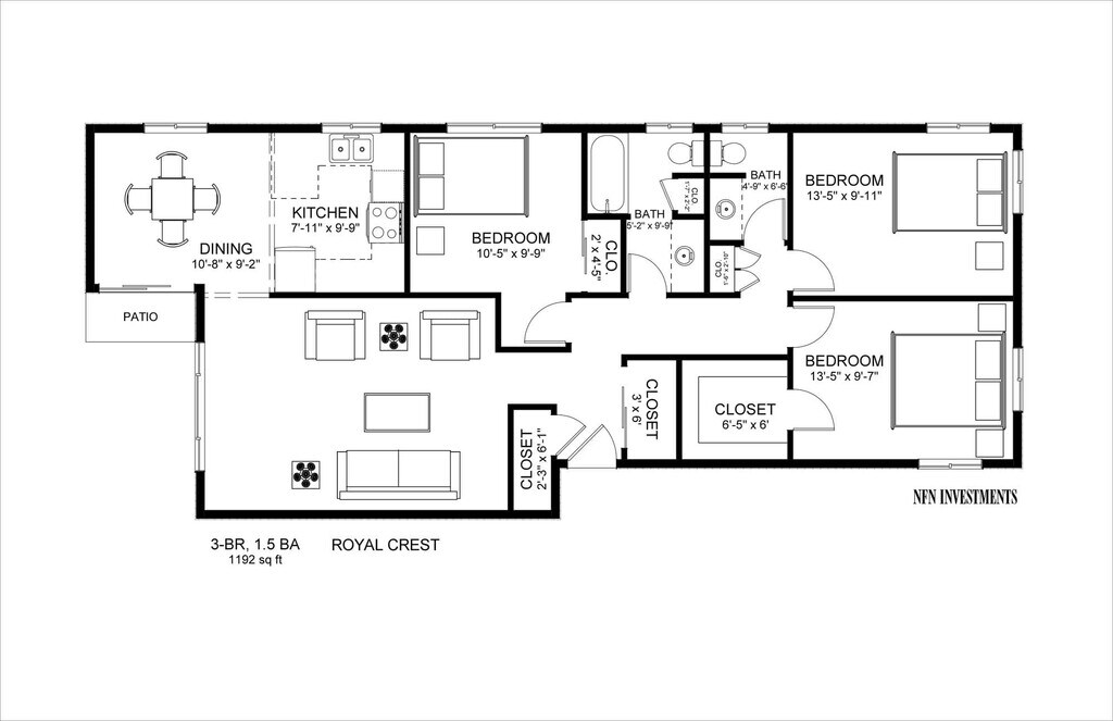 3 Beds, 1 Bath, 1192 sq ftModel Gallery