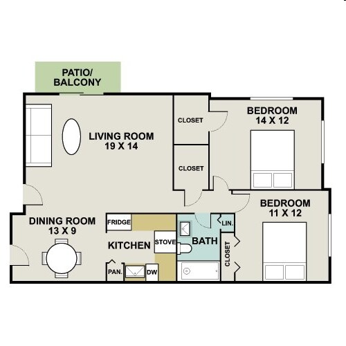 2 Beds, 1 Bath, 1000 sq ftPlus FeesAvailable NowModel Gallery