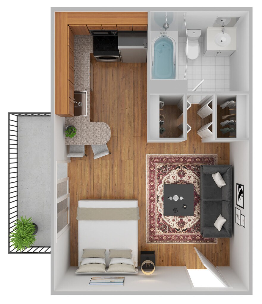 Studio, 1 Bath, 300 sq ftAvailable NowModel Gallery