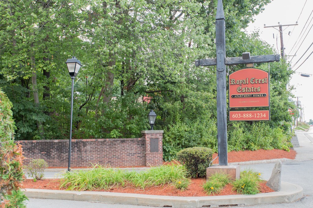 Royal Crest Estates Apartments in Nashua, NH is 24 miles from Manchester and just 40 miles from Boston and Logan International Airport. Some apartments have been remodeled and feature washer and dryer, maple cabinets, granite like countertops and black appliances. Many apartments have walk in closets, extra storage space, and balconies/patios. Smart home technology including locks and thermostat available! Our pet friendly, smoke free community features detached parking garages, on site recycling, large multi level fitness center with steam room, 2 pools and fully stocked fishing pond. Residents enjoy tennis, basketball and sand volleyball courts. Quiet living within walking distance to Royal Ridge Mall and only minutes from Everett Turnpike. Guarantors welcome! We are still open and offer many virtual options including live video tours, 3D virtual tours, and text.