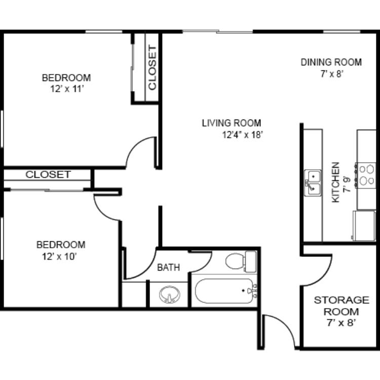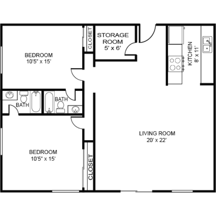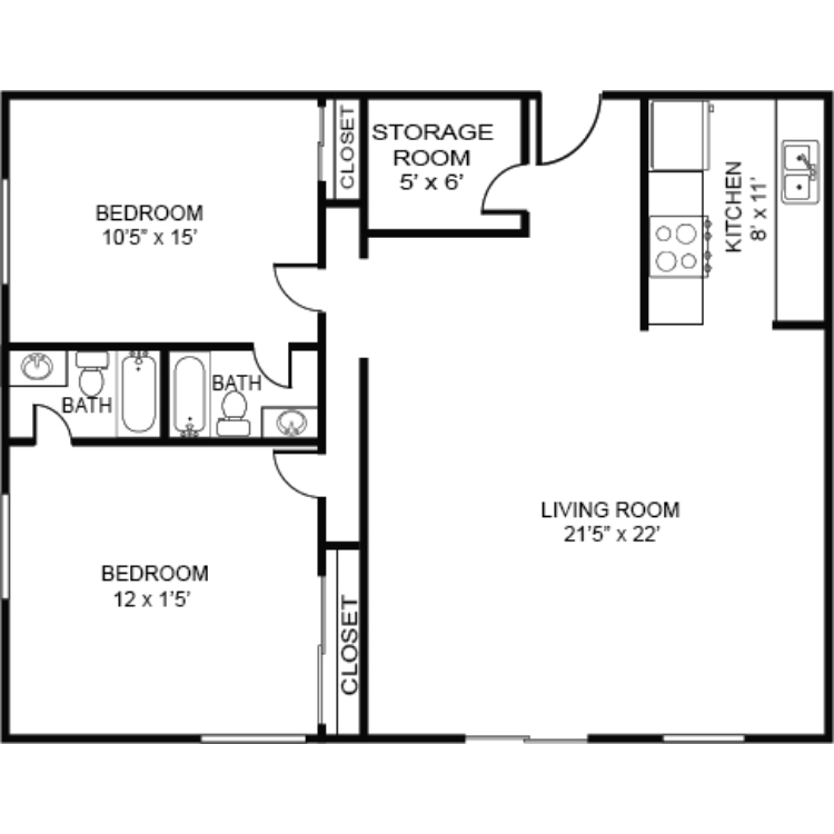 2 Beds, 1 Bath, 945 sq ftAvailable NowModel Gallery
