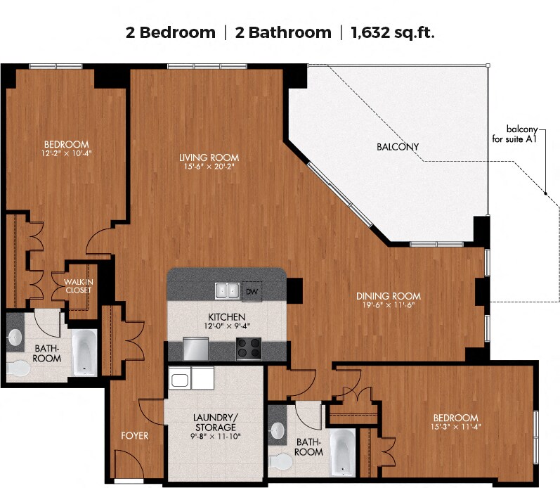 2 Bedroom 2 Bath - Floorplan 1 ![]()