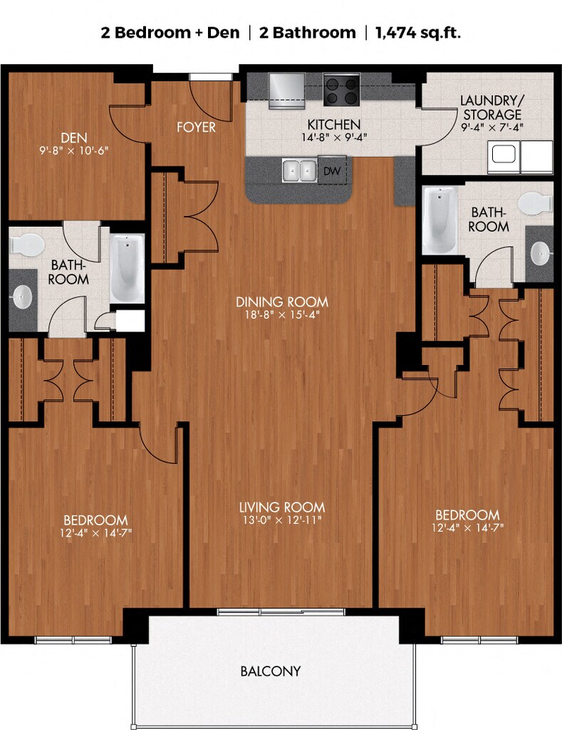 2 Bedroom plus Den 2 Bath - Floorplan 1 ![]()