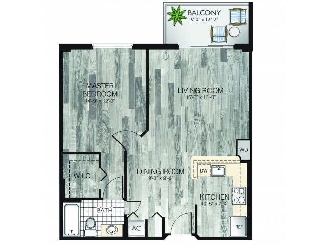 Apartment Model: Model AFrom $2,1761 Bedroom, 1 Bath, 845 sq ftAvailable NowFloorplansPhotos![]()