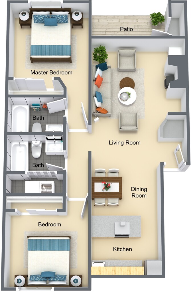 2 Beds, 2 Baths, 1040 sq ftTotal Monthly PriceAvailable NowModel Gallery