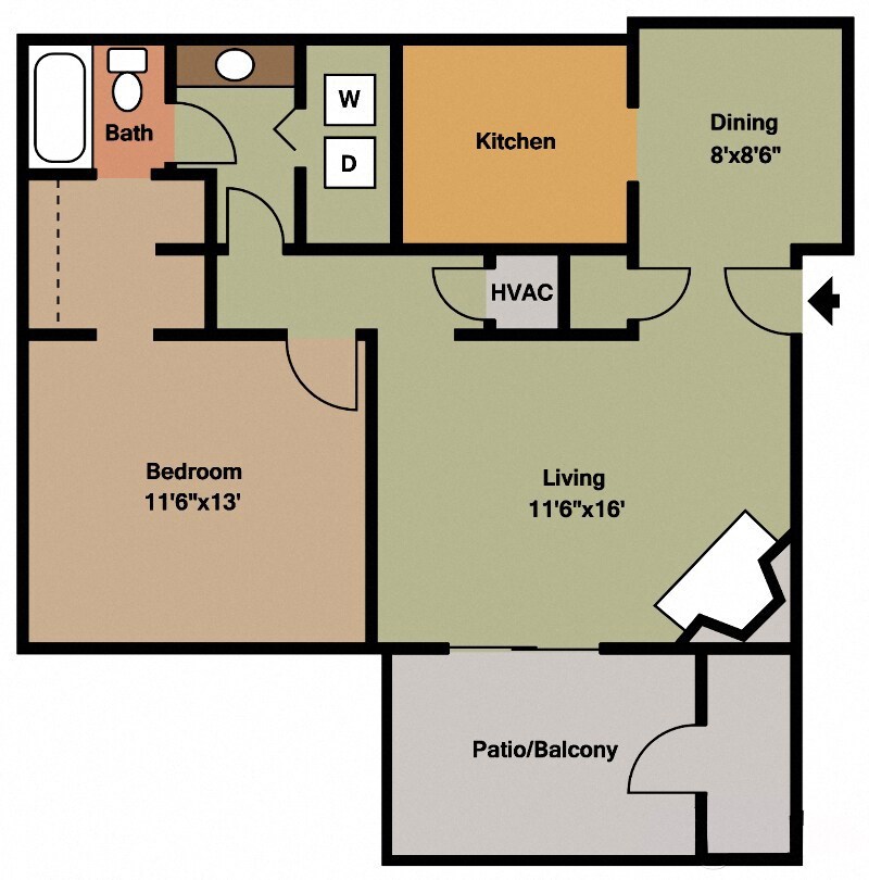 Apartment Model: 1 Bed - 1 BathFrom $9851 Bedroom, 1 Bath, 750 sq ftAvailable NowFloorplansPhotos![]()