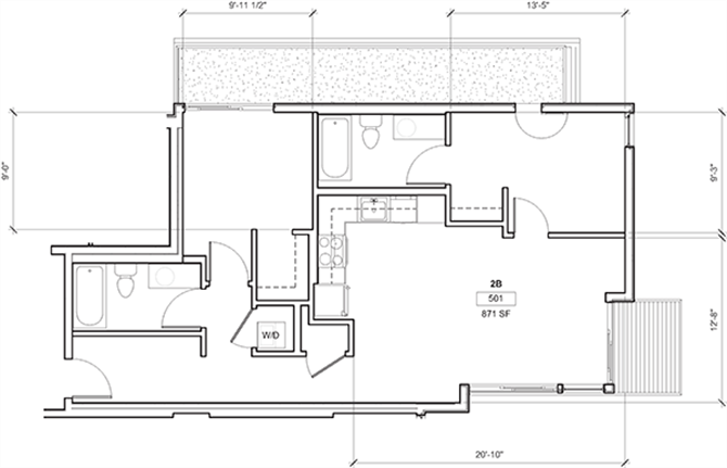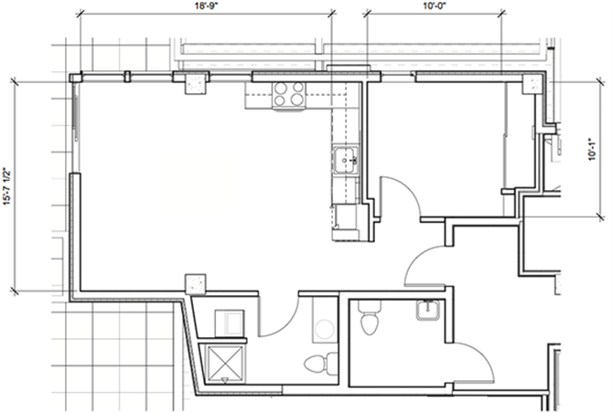 Urban 1 Bedroom B - Floorplan 1 Urban 1 Bedroom E